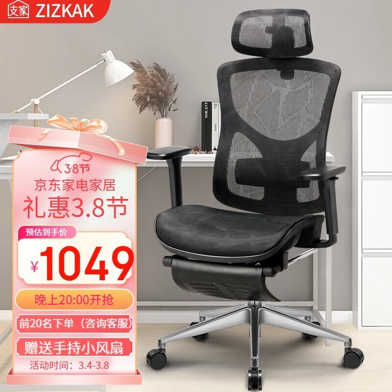 支家1606人体工学办公椅黑框黑网脚踏设计可躺京东促销