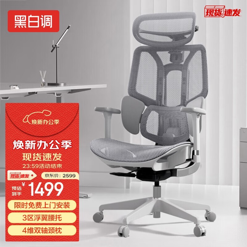 黑白调E3人体工学椅1227元好价到手