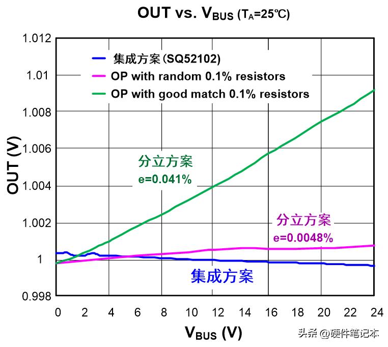 另一方面,如果产品的使用环境有较大温度变化,分立方案还需要考虑电阻温漂带来的误差。