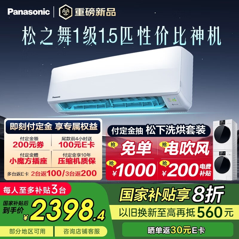 松下空调“松之舞”系列1.5匹新一级能效变频冷暖空调挂机