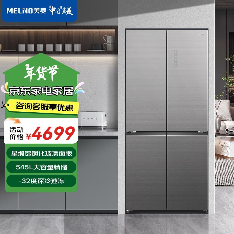 美菱星缎锦彩晶系列冰箱:545升大容量,变温室保鲜,静音节能,仅售4699元