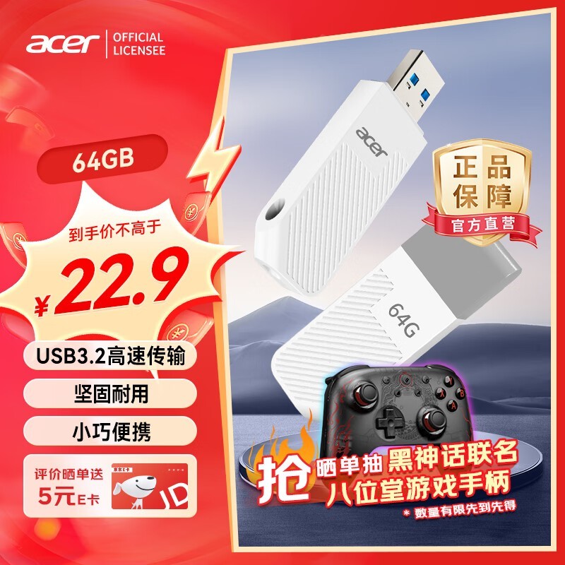 高效便捷:Acer UP300-64GB USB3.0 U盘,22.9元起,商务人士的理想移动存储之选
