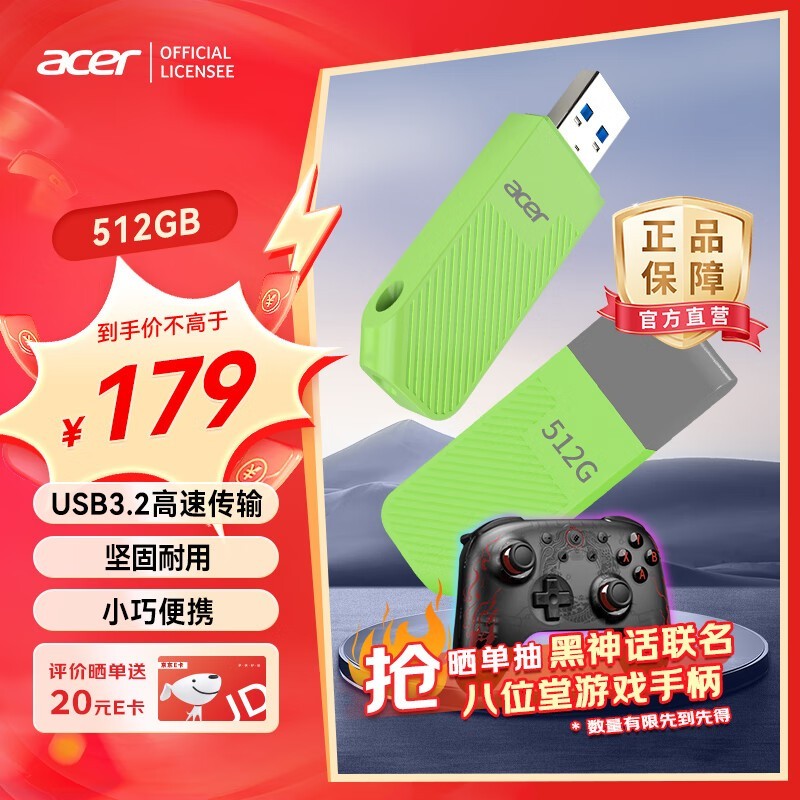 宏碁UP300系列512GB USB3.0高速绿盘:商务办公与学习的便携存储神器