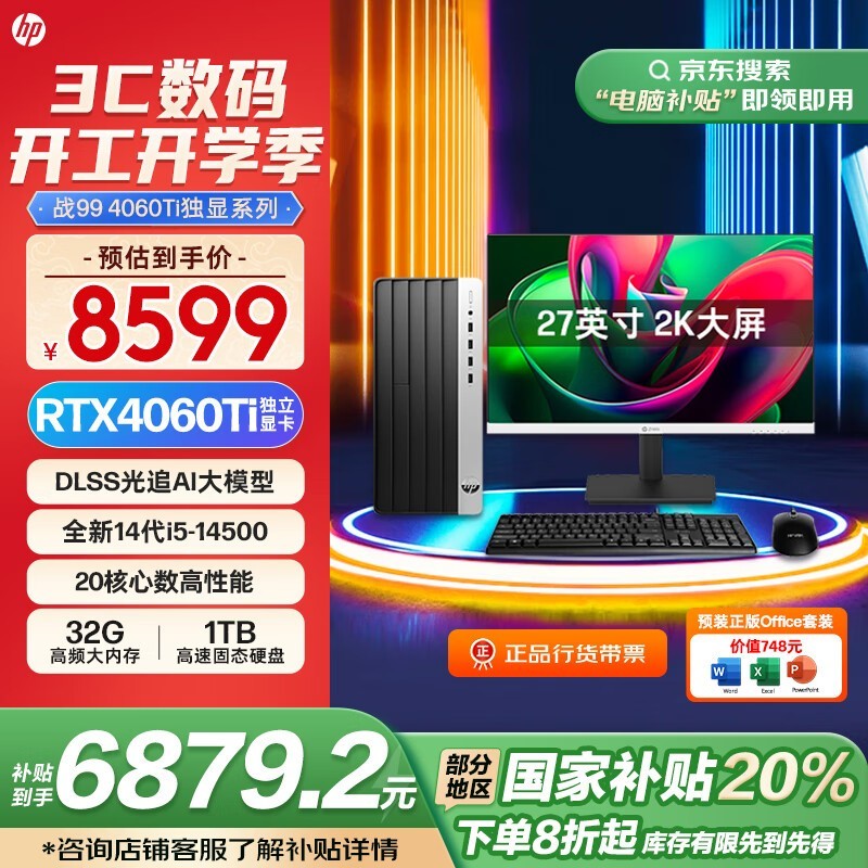 惠普战99台式电脑(i5/32GB/1TB)搭2K屏超值价