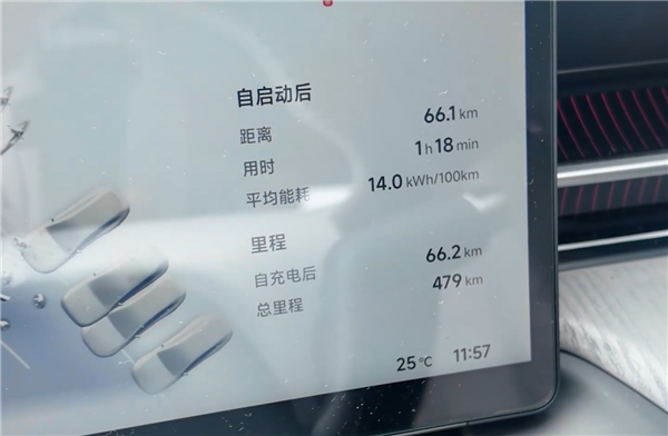 挑战还没完,补能结束后,5人一同坐上了这辆G6开启电耗测试,设置空调温度为20摄氏度,高速最高车速126km/h,最终用时1小时18分钟行驶了66.1公里,表显平均能耗14kWh/100km,对于一台中型纯电SUV而言,成绩相当优秀。