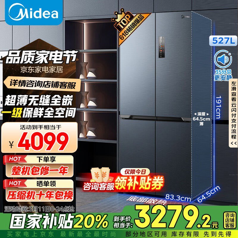 美的MR - 553WUSPZE冰箱,多种优惠到手2618元
