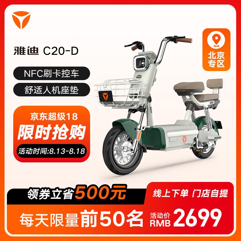 雅迪电动车C20成人款长续航电动自行车京东促销到手价2749元