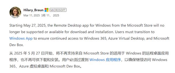 从2025年5月27日起,用户将无法通过旧版远程桌面应用访问这些功能,因此微软敦促用户尽快完成切换。