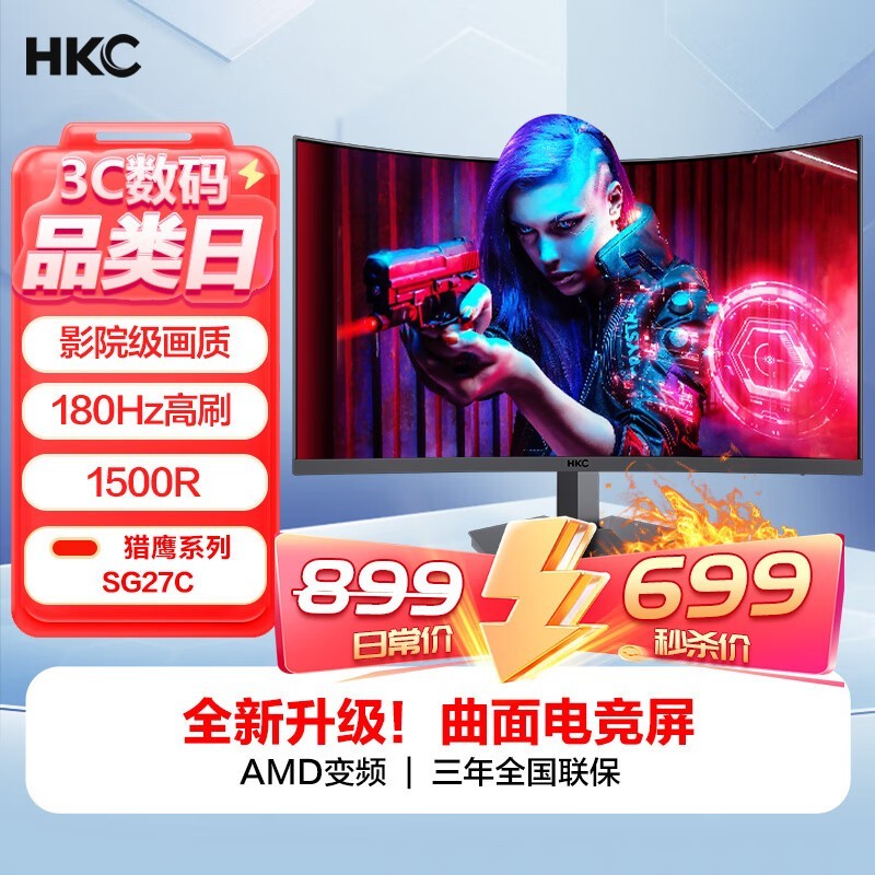 HKC SG27C电竞显示器促销:144Hz刷新率,到手价689元