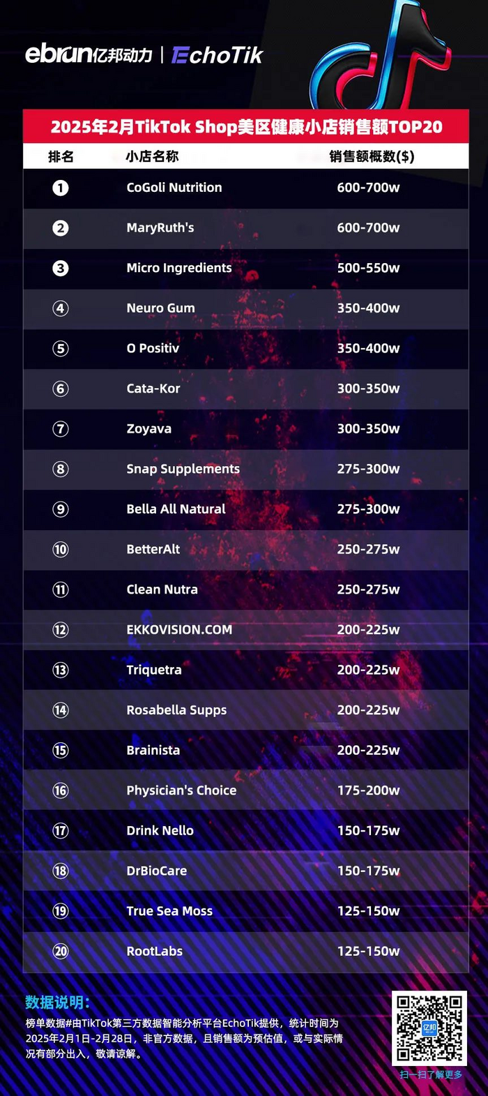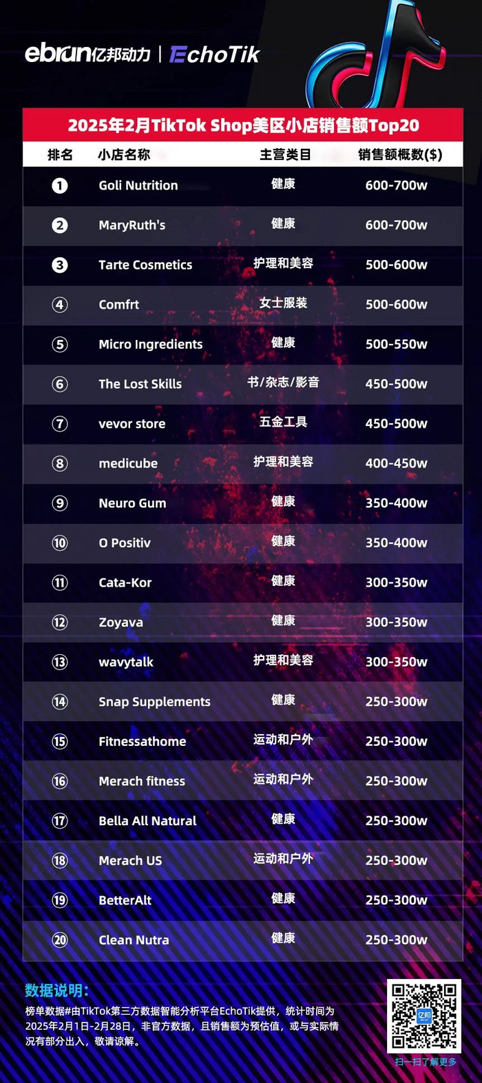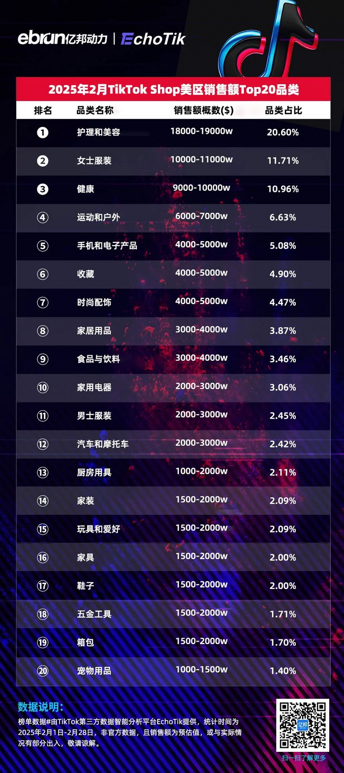 榜单数据#由TikTok第三方数据智能分析平台EchoTik提供,统计时间为2025年2月1日-2月28日,非官方数据,且销售额为预估值,或与实际情况有部分出入,敬请谅解。