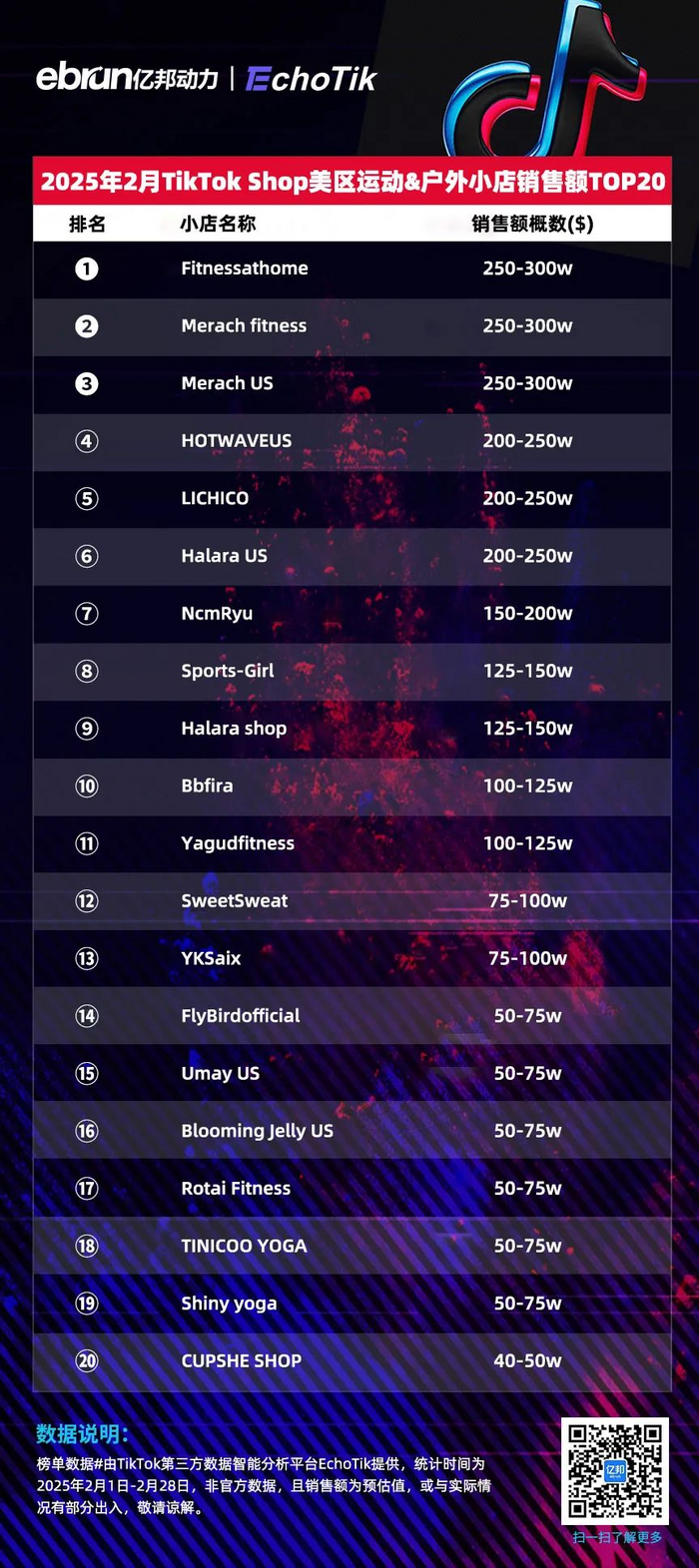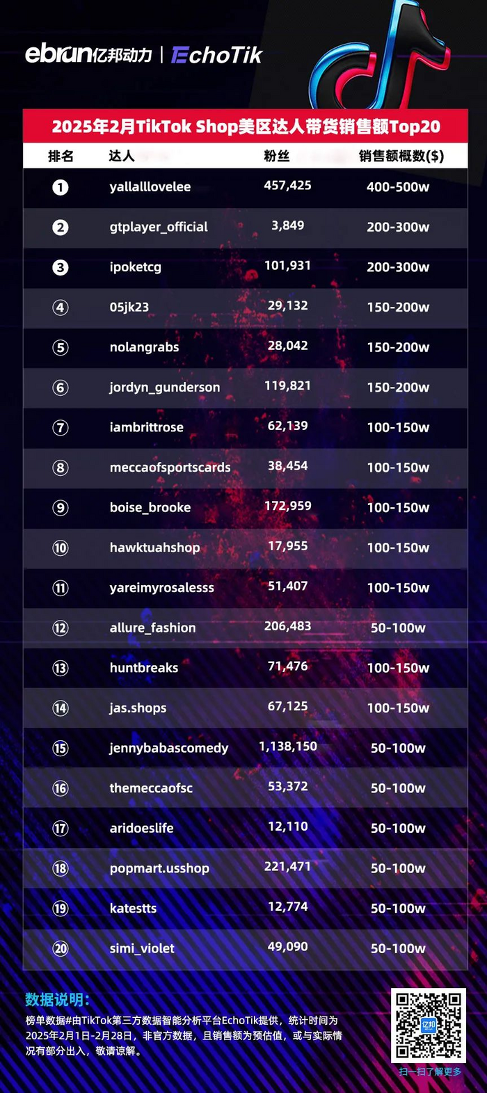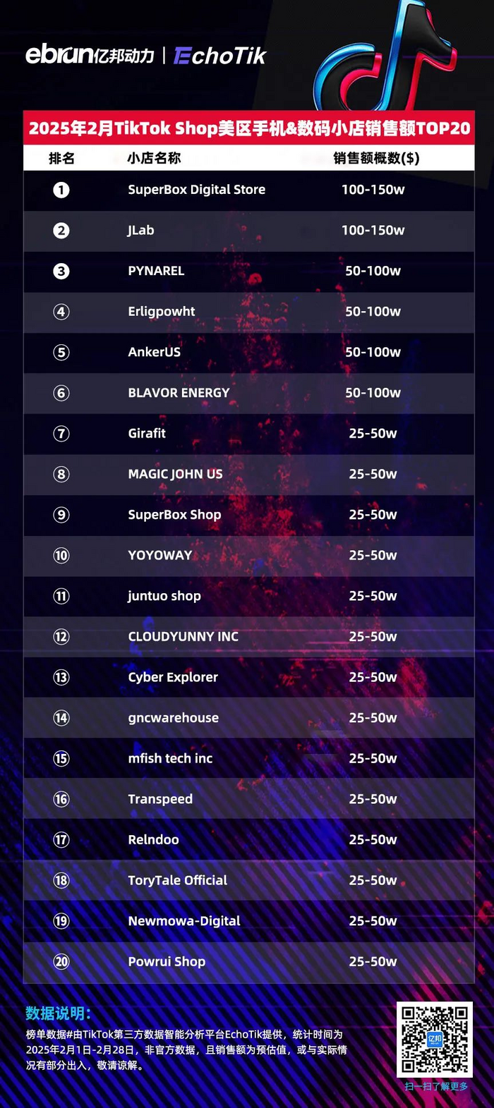 榜单数据#由TikTok第三方数据智能分析平台EchoTik提供,统计时间为2025年2月1日-2月28日,非官方数据,且销售额为预估值,或与实际情况有部分出入,敬请谅解。