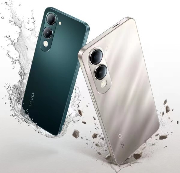 vivo Y29s后置药丸形状的摄像头模组,其中包括两颗摄像头和一颗独立的闪光灯,正面则采用了一块水滴屏,屏占比较为一般,整体造型比较保守。