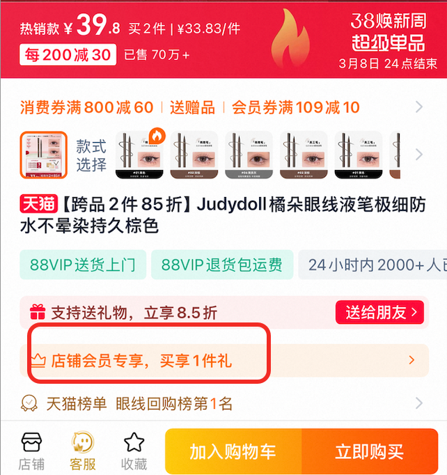 有接近淘宝的人士表示,此次改版”中高频“的店铺会员信息露出,意味着淘宝今年将更加重视店铺会员及会员复购,“强化店铺会员心智后,平台有可能会配套新的运营策略,商家经营逻辑也将随之发生改变”。