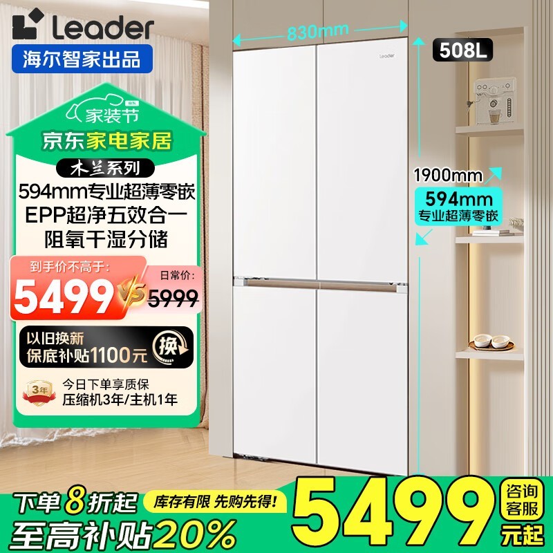海尔475L十字门冰箱京东促销低至4299元