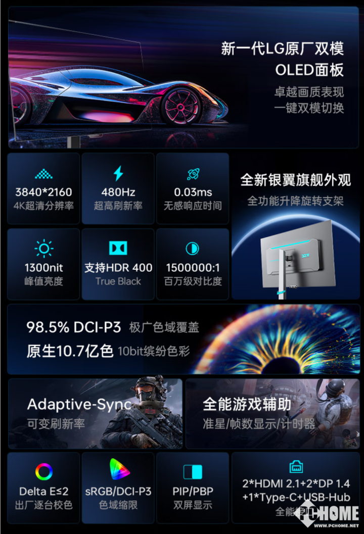 雷神推出银翼ZU32F240E电竞显示器,采用了LGD的W-OLED面板,支持双模切换,首发价8999元。
