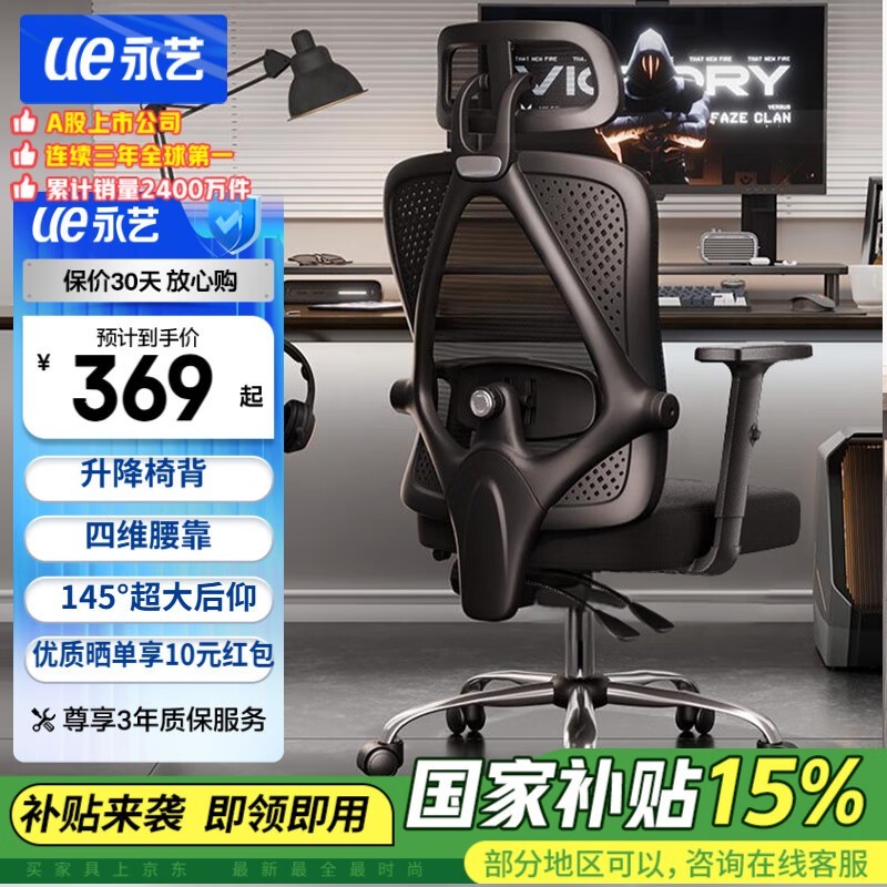 永艺撑腰椅M60人体工学电脑椅京东特惠265元享多重福利