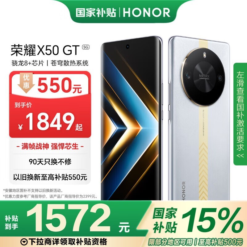 荣耀X50 GT 5G手机满帧战神引擎强劲性能