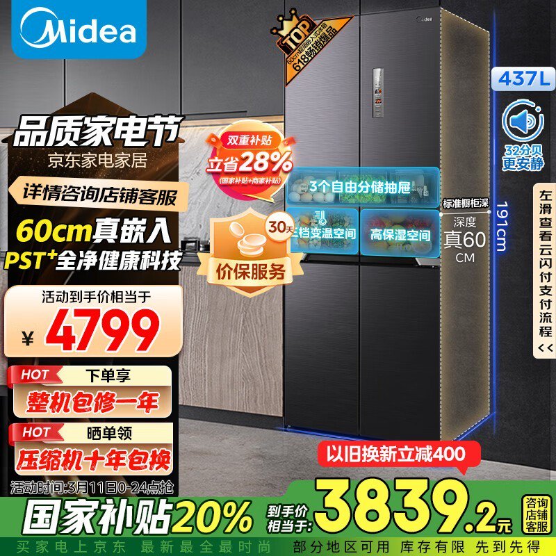 美的MR - 458WUSPZE冰箱京东优惠低至3157元