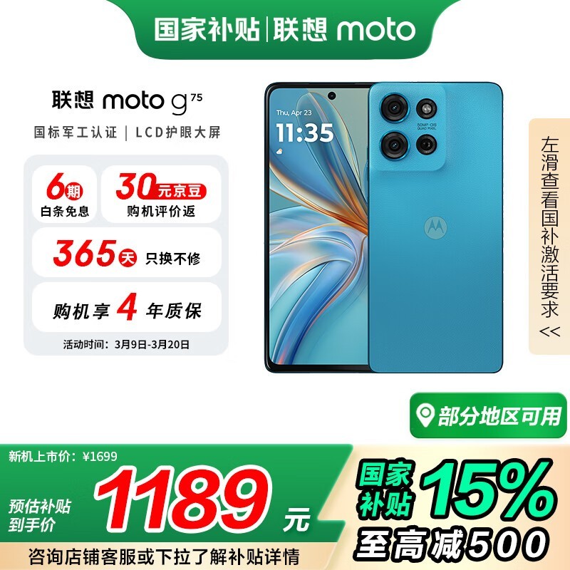 摩托罗拉G75 5G手机(8GB+256GB)低至1189元