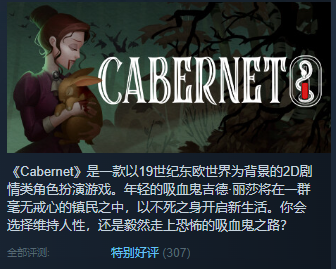 也有《精灵旅社》这种可爱风,反正都和吓人不沾边但在最近的独立游戏Cabernet中,吸血鬼不仅算不上神通广大,反而处处受限,办什么事都得“讲人情”,连吸血的看家本领施展起来都有讲究。