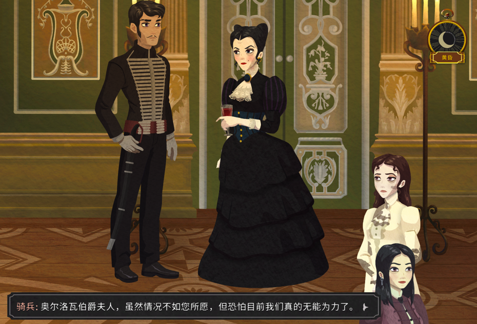 至于吸血鬼的噱头,其实Cabernet更像是代入吸血鬼的视角,带玩家浅浅领略了19世纪东欧的风土人情和动荡变革。女主还是人类的时候,因为报考医学院陷入了重度焦虑,又在机缘巧合下被变为吸血鬼,被迫抛弃了过往的一切,这层变化也让她迈过地位阶级的高墙,成了贵族阶级和平民阶层的一束纽带。