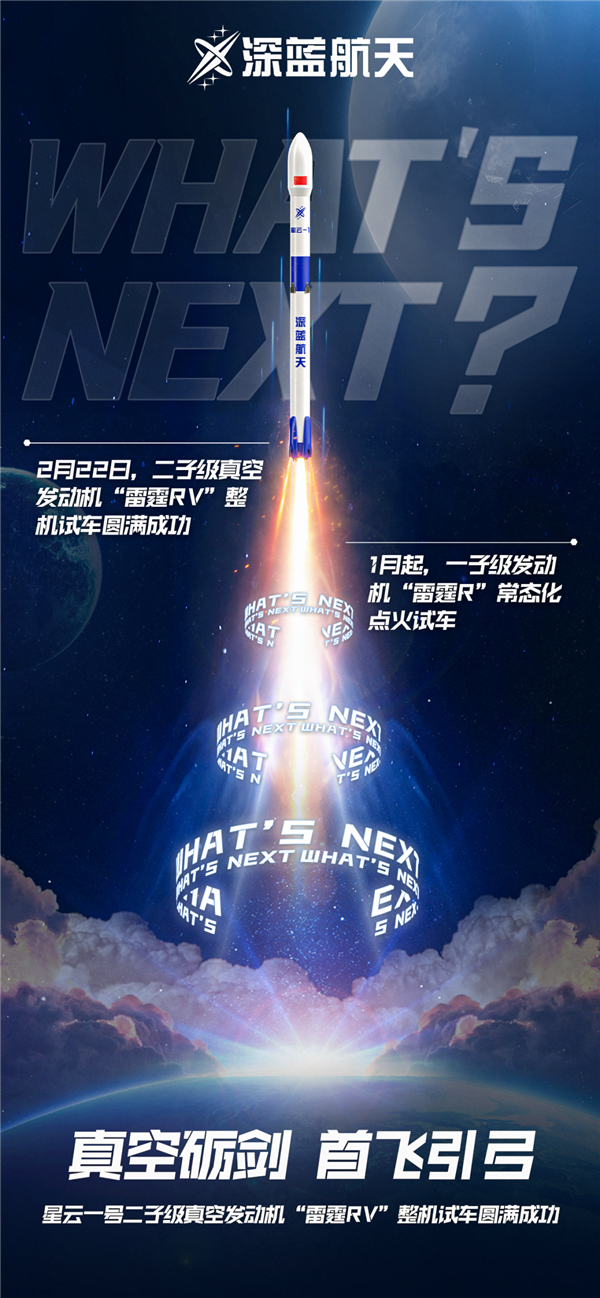 快科技3月11日消息,2025年2月22日,深蓝航天自主研发的星云一号火箭配套二子级液氧煤油真空发动机“雷霆RV”进行了第二轮整机试车,取得圆满成功!