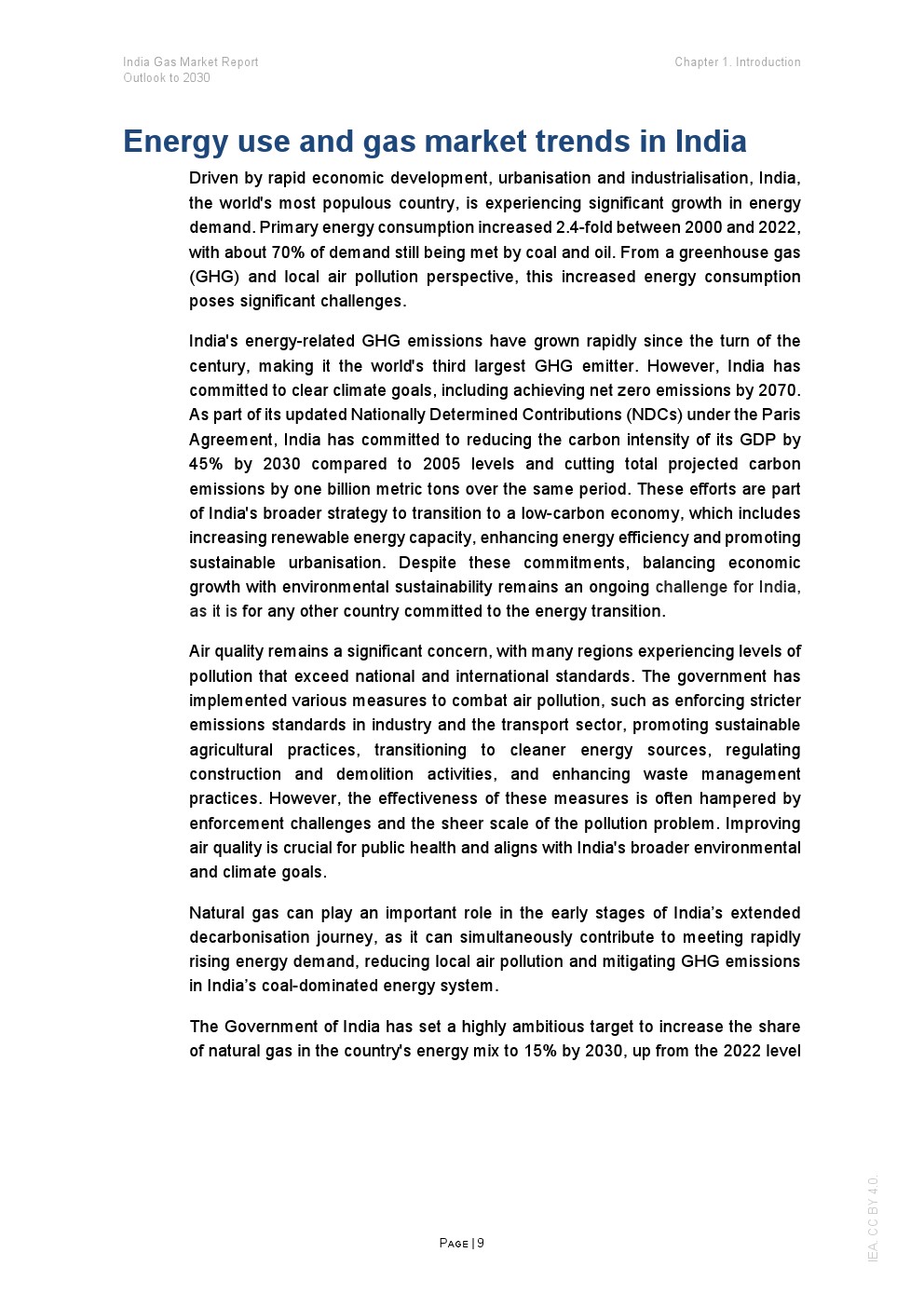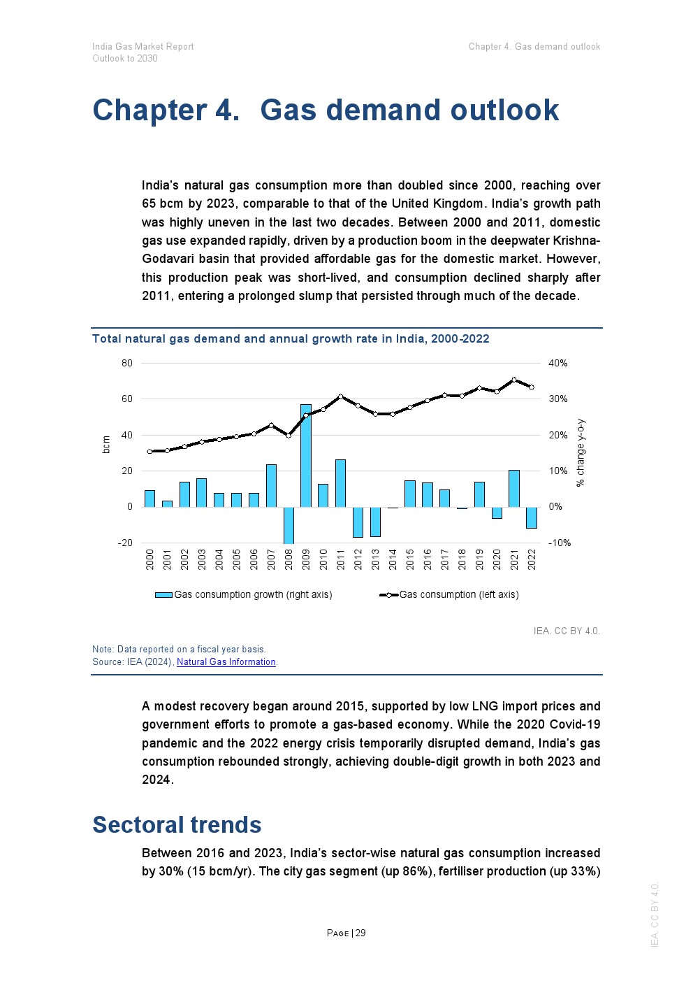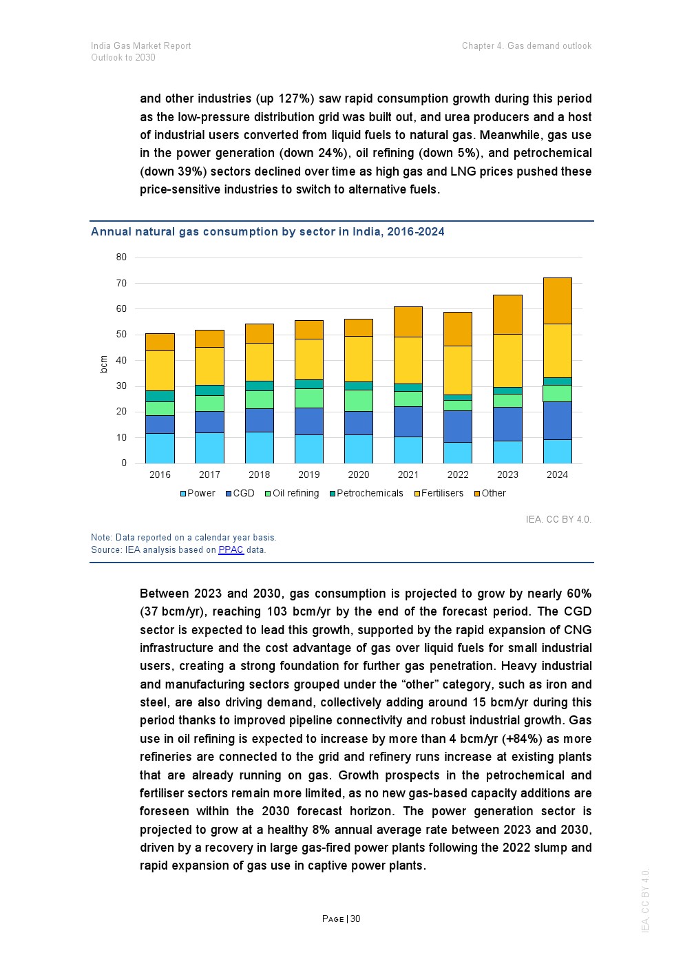 国际能源署(IEA)最新的“印度天然气市场报告”显示,预计2030年,印度的天然气需求将增长近60%,这标志着该国能源格局的重大转变,并使印度的天然气需求预计与全球一些最大消费国持平。