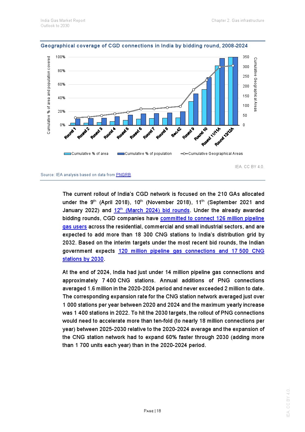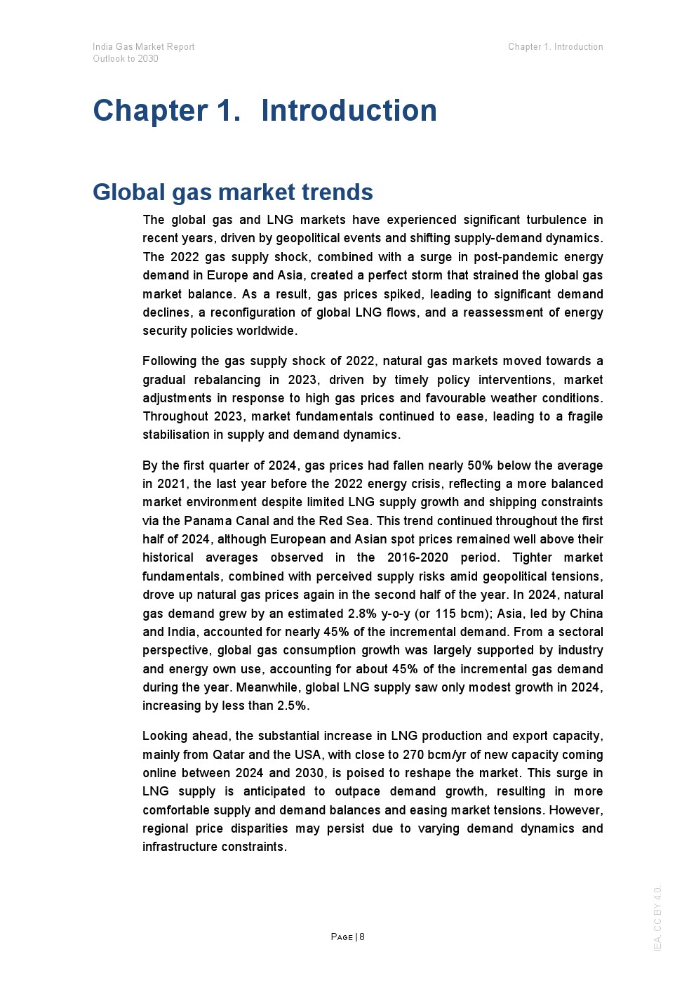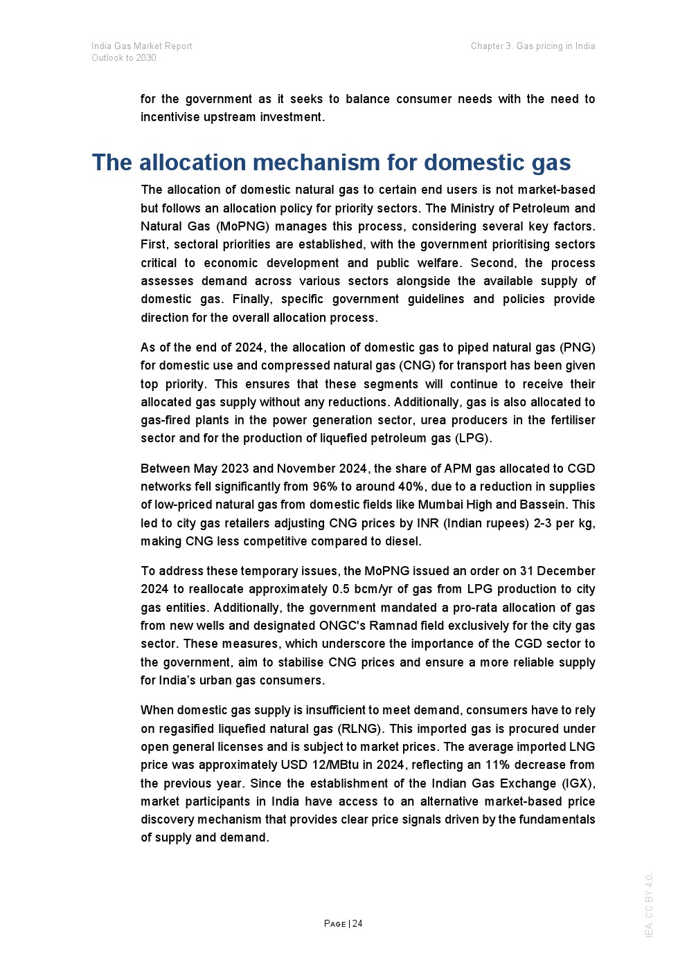 国际能源署(IEA)最新的“印度天然气市场报告”显示,预计2030年,印度的天然气需求将增长近60%,这标志着该国能源格局的重大转变,并使印度的天然气需求预计与全球一些最大消费国持平。