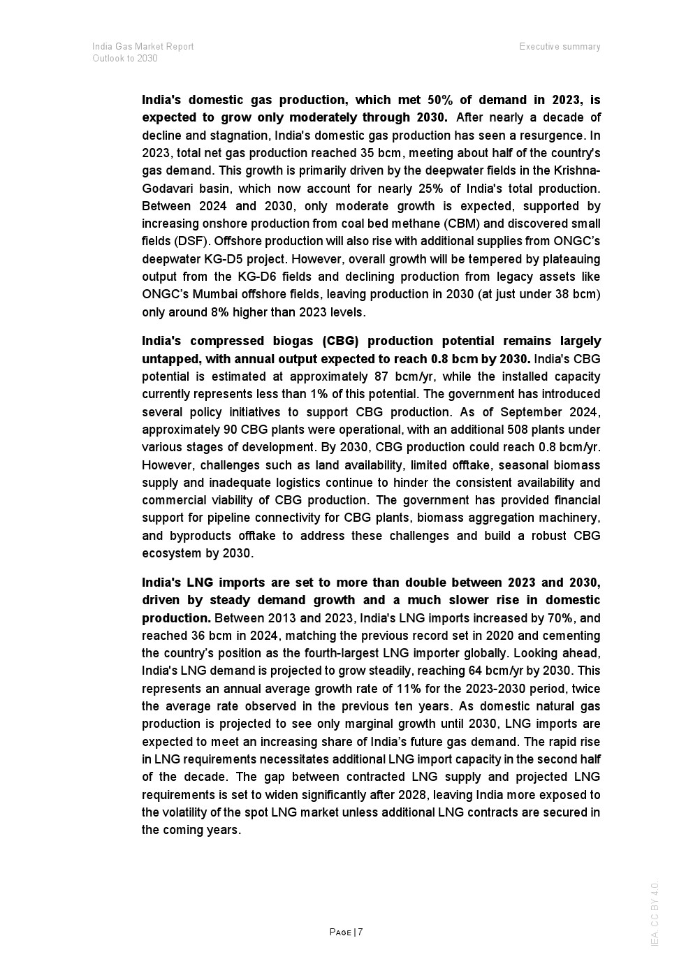 印度的国内天然气产量在2023年满足了50%的需求,预计将逐步增长,到2030年达到略低于380亿立方米的水平,比2023年增长约8%。