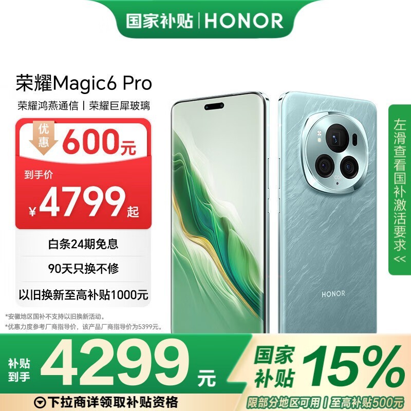 荣耀Magic6 Pro手机优惠,原价4599到手3976