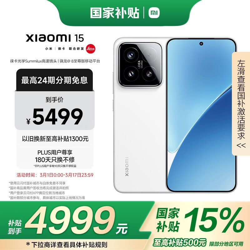 小米Xiaomi 15 5G手机白色款京东超值优惠