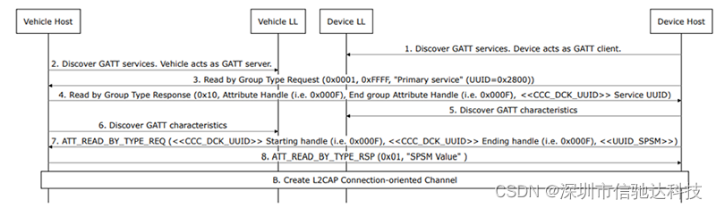 1. 主动发起配对:设备发送BLE配对请求到车辆。车辆发送BLE配对响应到设备;