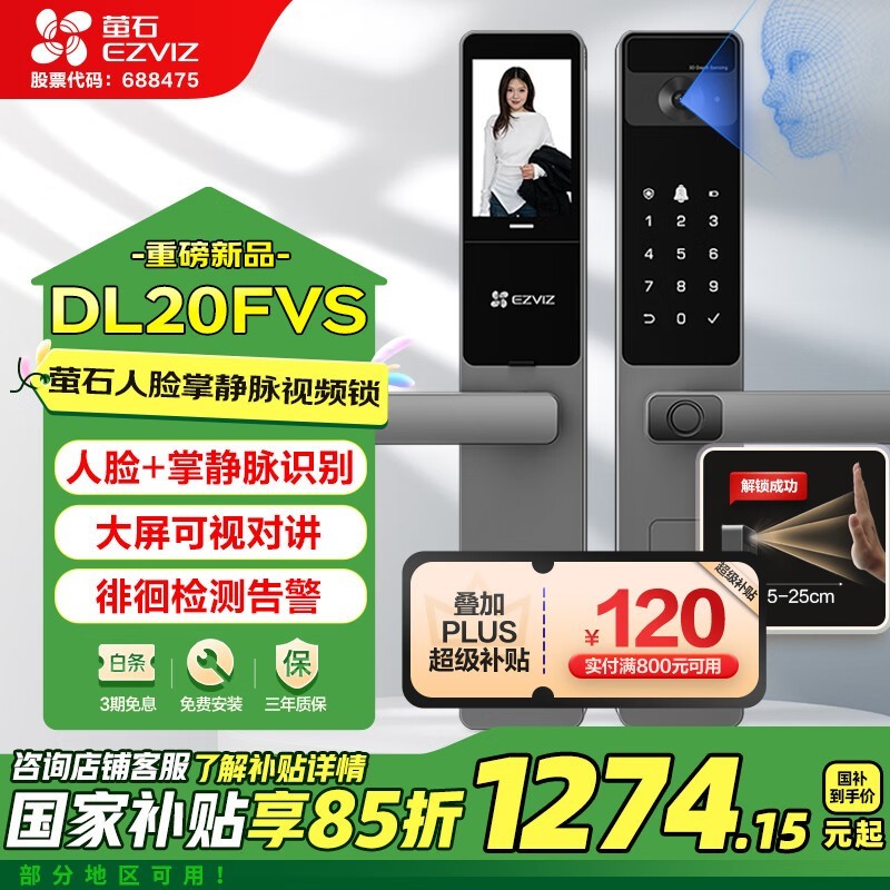 萤石DL20FVS人脸锁1499元到手1165元