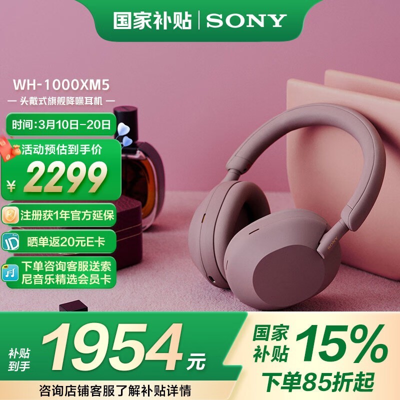 索尼WH-1000XM5主动降噪蓝牙耳机玫瑰灰促销