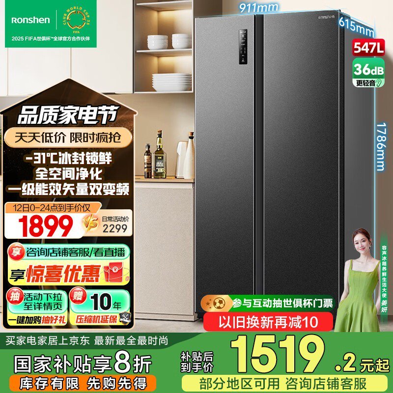 容声547升双开门电冰箱限时促销到手1504元