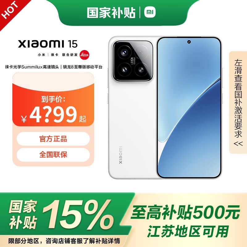 小米Xiaomi 15 5G手机骁龙8至尊版处理器白色外观