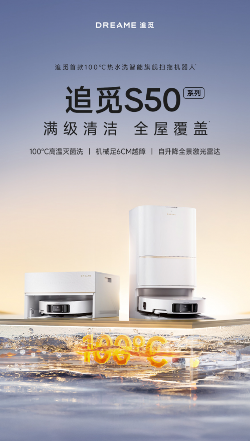 近日,追觅首款100℃热水洗智能旗舰扫地机器人S50 Pro重磅上市,作为追觅扫地机器人家族中清洁力满级选手,这款产品搭载了追觅多款首创核心科技,包括100℃灭菌洗、机械足6cm越障、自升降全景激光雷达等等,为家庭清洁尤其是厨房重油污场景提供了全新的解决方案。