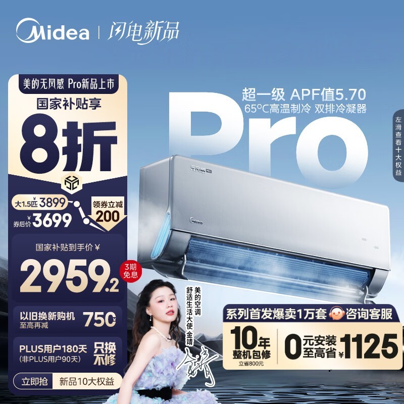 美的无风感Pro大15匹壁挂式空调新一级能效变频冷暖