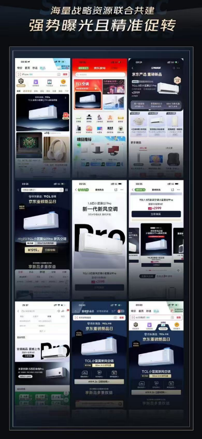 在新品的宣发层面,TCL小蓝翼Q7 Pro新风空调以京东为核心阵地,通过京东站内+站外多平台相结合的种草推广,在首发上线前就成功吸引消费者的广泛关注和预约购买。在站内,京东与TCL大佬共同打造了“总裁价到”直播,通过亲身上阵的讲解推高新品热度,直播当日预约数环比增长171%;京东还通过APP首焦位、首页推送、搜索词加权、搜索栏下霸屏等站内黄金流量位为TCL小蓝翼Q7 Pro新风空调带来海量曝光和精准人群触达,广泛吸引意向用户的浏览关注。