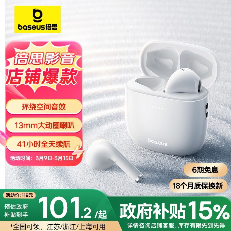 倍思W04蓝牙耳机优惠价90.53元超值入手