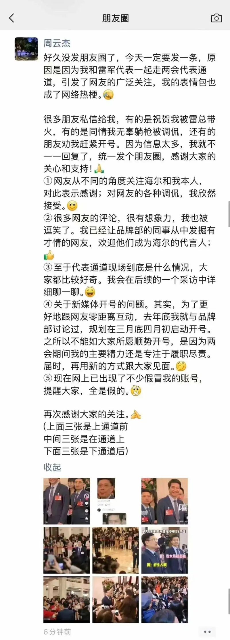 但周云杰并不排斥在社交平台设立个人账号,在他看来,时代如此,企业家需要借助平台跟消费者保持很好的交流沟通。