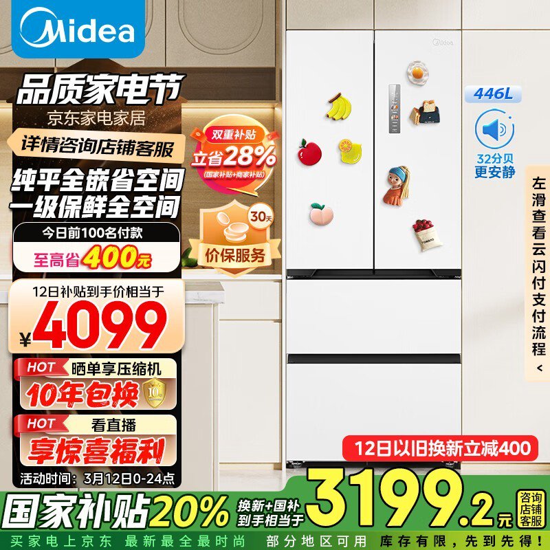 美的MR - 468WUFPZE冰箱家庭款,京东优惠价2985元