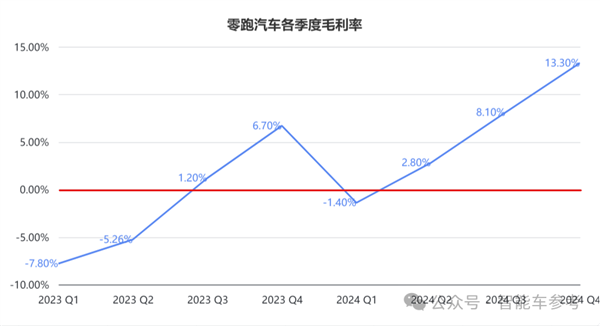 其中,第四季度的毛利率达到13.3%,创下单季毛利率的历史新高,要知道,2023年零跑的毛利率还是负值,从去年第二季度才开始明显增长。