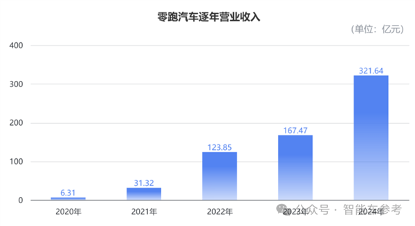 2024年,零跑实现29.4万台交付量,营收322亿元,同比增速均达到100%左右,随之提振的股价比去年增长了80%。