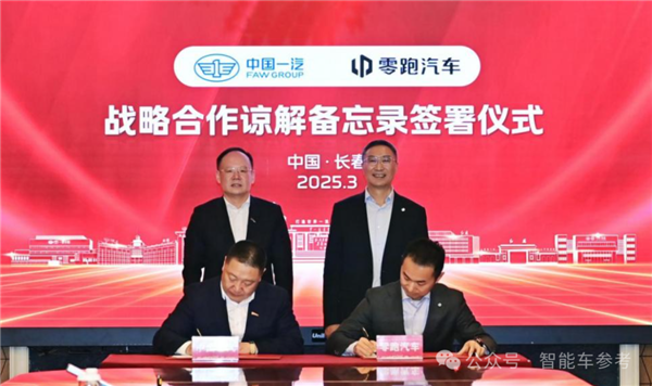 3月3日,零跑和一汽签署了《战略合作谅解备忘录》。