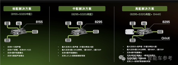 再比如首个「四域合一」的中央集成式电子电气架构,被零跑成为“四叶草”,通过1颗SOC(高通8295/8155),加上1颗MCU(恩智浦S32G),实现座舱域、智驾域、动力域、车身域,四域中央超算,集成15个域功能。