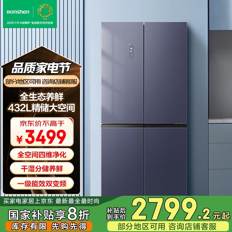 容声BCD-432WD11FPC:大容量、变频节能冰箱,静音保鲜,品质生活的理想之选