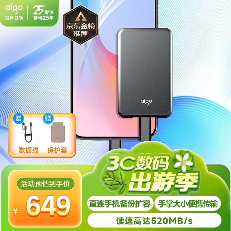 爱国者S7 2TB移动固态硬盘京东优惠价644元