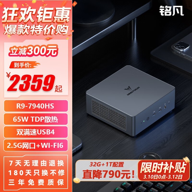 铭凡UM790迷你主机AMD R9-7940HS处理器京东促销到手2409元