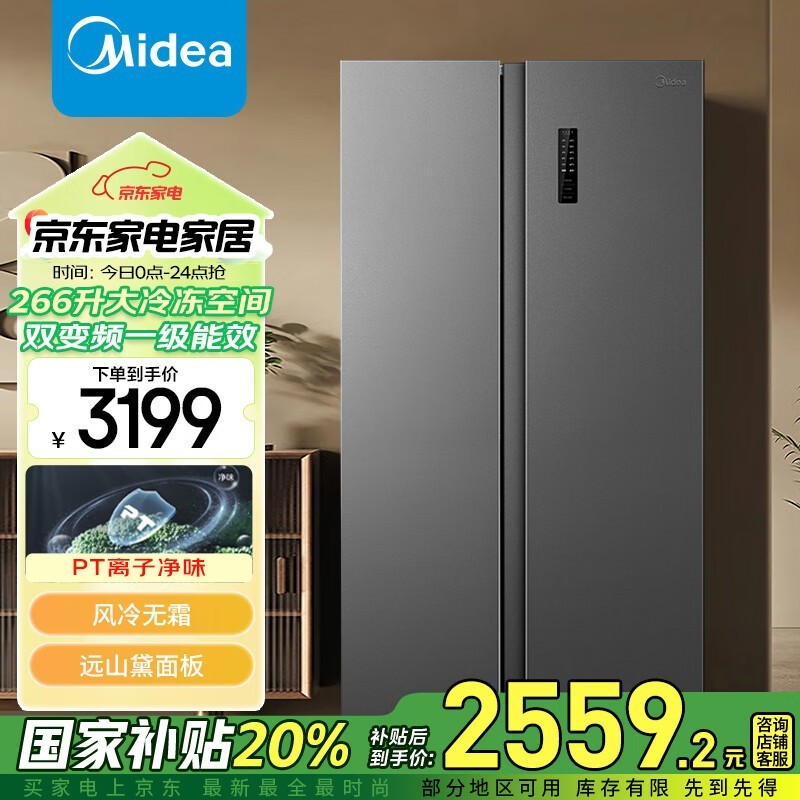 美的529升智能变频冰箱:远山黛设计,大容量无霜保鲜,节能高效仅售2999元